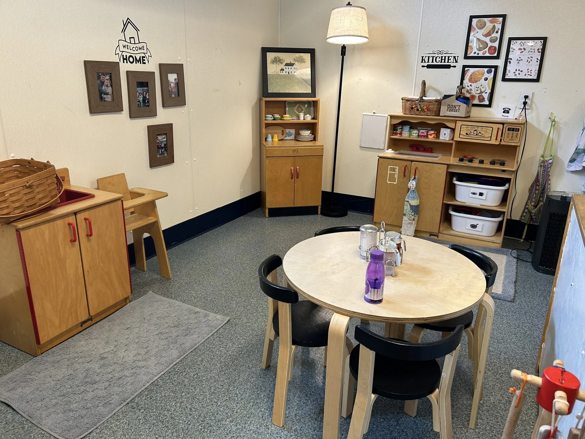 Our classroom is designed to feel familiar and welcoming. With a touch of old-school preschool charm, each area has a clear purpose, from building to dramatic play, with materials children can choose and return on their own. The space is cozy and thoughtfully organized to support independence, exploration, and a strong sense of community.